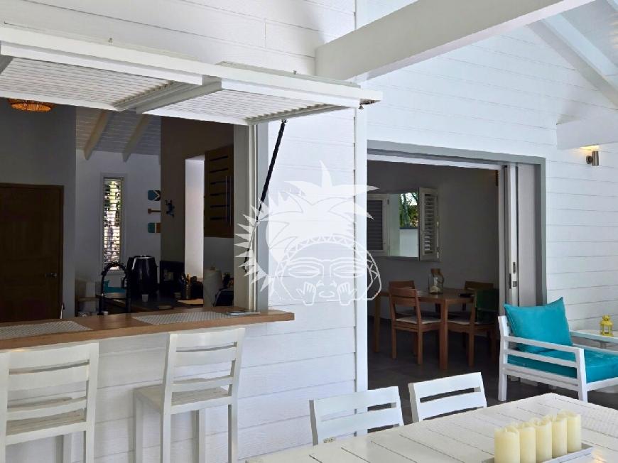 L'espace de vie s'ouvre sur une vaste terrasse couverte avec salon extérieur. La villa dispose de 3 chambres spacieuses, chacune avec sa salle de bain privée, ainsi qu'un toilette invités et une buanderie équipée.